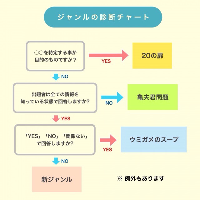Q.◯◯を特定する事が目的のものですか? →YES 20の扉で出題しましょう